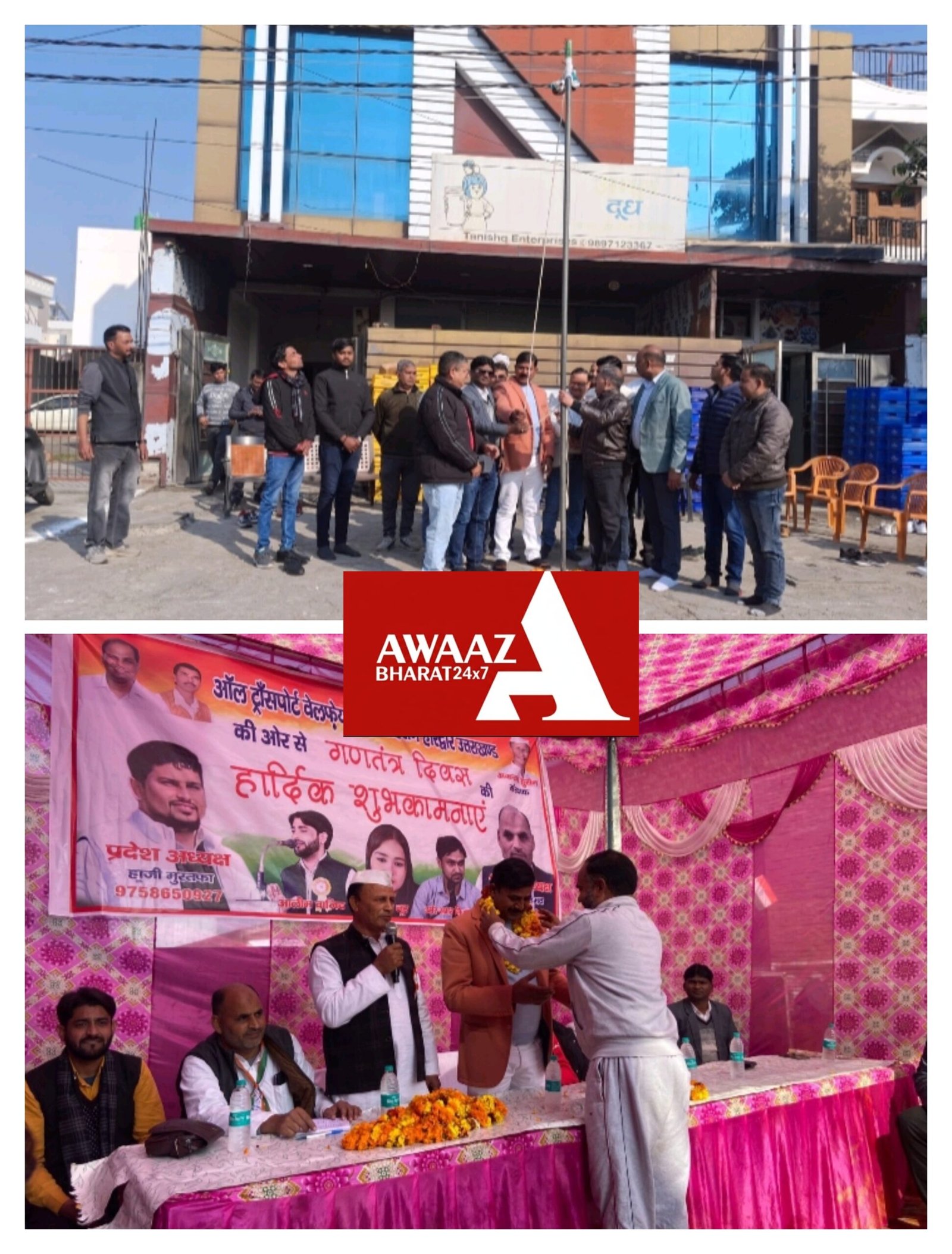 आज आज 77वें गणतंत्र दिवस के अवसर पर आप नेता प्रशांत राय कई कार्यक्रमों में शामिल हुए सबसे पहले उन्होंने Q-26 शिवालिक नगर स्थित कार्यालय पर ध्वजारोहण किया। उसके बाद सलेमपुर में ऑल ट्रांसपोर्ट वेलफेयर एसोसिएशन के द्वारा आयोजित कार्यक्रम में शिरकत की आपको बता दें कि यह कार्यक्रम ऑल ट्रांसपोर्ट वेलफेयर एसोसिएशन के प्रदेश अध्यक्ष अकरम हुसैन जी की अध्यक्षता में किया गया जिसमें मुशायरा का आयोजन भी किया गया इस मुशायरा में प्रशांत राय जी ने भी बढ़-चढ़कर हिस्सा लिया। इसी के साथ अन्य कई कार्यक्रमों में आप नेता प्रशांत राय जी ने प्रतिभा किया। आपको बता दे की शिवालिक नगर स्थित कार्यालय पर ध्वजारोहण के दौरान आप नेता प्रशांत राय, दीपक भारद्वाज, अनिल सती, प्रमोद, गुलाब यादव, दिलीप, प्रवीन, सुनील पांडे, मुकेश सुई, राकेश शर्मा, मनोज सिंह आदि उपस्थित रहे। गणतंत्र दिवस के अवसर पर आप नेता प्रशांत राय कई कार्यक्रमों में शामिल हुए सबसे पहले उन्होंने Q-26 शिवालिक नगर स्थित कार्यालय पर झंडारोहण किया। उसके बाद सलेमपुर में ऑल ट्रांसपोर्ट वेलफेयर एसोसिएशन के द्वारा आयोजित कार्यक्रम में शिरकत की आपको बता दें कि यह कार्यक्रम ऑल ट्रांसपोर्ट वेलफेयर एसोसिएशन के प्रदेश अध्यक्ष अकरम हुसैन जी की अध्यक्षता में किया गया जिसमें मुशायरा का आयोजन भी किया गया इस मुशायरा में प्रशांत राय जी ने भी बढ़-चढ़कर हिस्सा लिया। इसी के साथ अन्य कई कार्यक्रमों में आप नेता प्रशांत राय जी ने प्रतिभा किया। आपको बता दे की शिवालिक नगर स्थित कार्यालय पर झंडारोहण के दौरान आप नेता प्रशांत राय, दीपक भारद्वाज, अनिल सती, प्रमोद, गुलाब यादव, दिलीप, प्रवीन, सुनील पांडे, मुकेश सुई, राकेश शर्मा, मनोज सिंह आदि उपस्थित रहे।