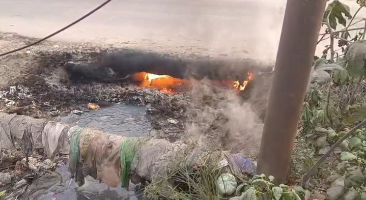 राहगीरों ने पानी डालकर आग बुझाने की कोशिश की, लेकिन नाले में आग सुलगती रही, जिससे ब्लास्ट का खतरा बढ़ गया।